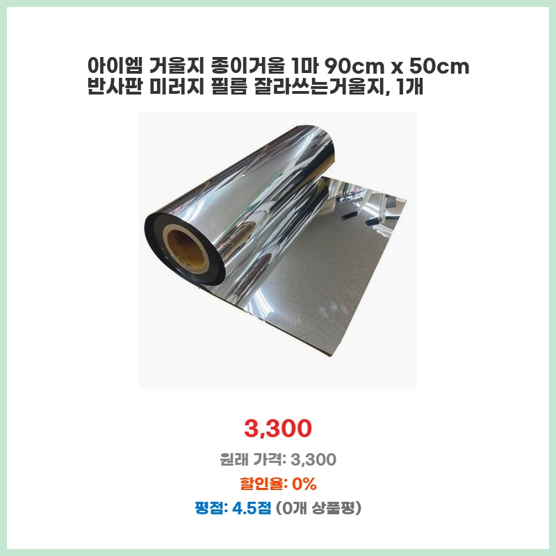 아이엠 거울지 종이거울 1마 90cm x 50cm 반사판 미러지 필름 잘라쓰는거울지, 1개