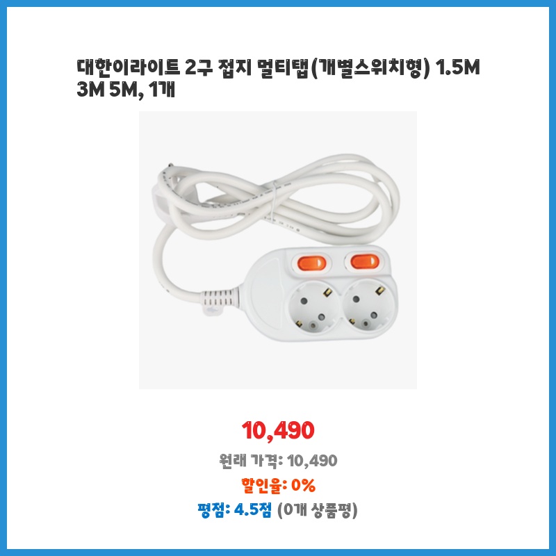 여러 기기를 사용하는데 개별 스위치로 편리하게 전원 관리하고 싶어서 구매했습니다. 1.5M, 3M, 5M 중 선택 가능한 길이도 장점입니다. 접지 기능으로 안전성도 확보할 수 있어 만족스럽습니다.