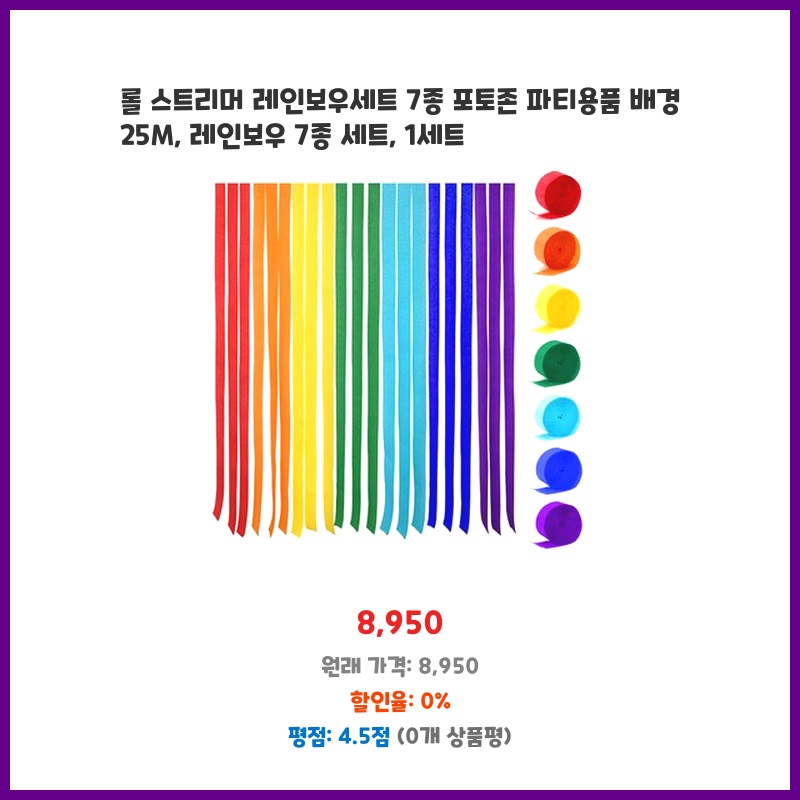 롤 스트리머 레인보우세트 7종 포토존 파티용품 배경 25M, 레인보우 7종 세트, 1세트