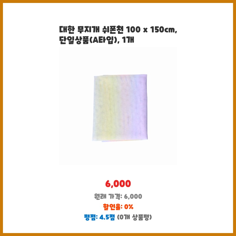 대한 무지개 쉬폰천 100 x 150cm, 단일상품(A타입), 1개