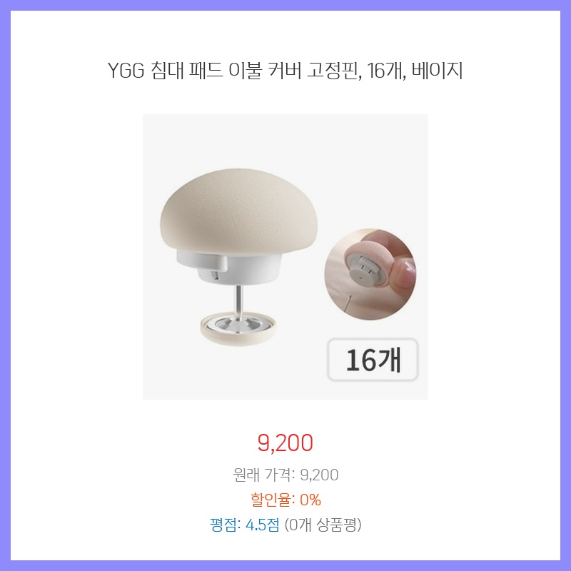 이불과 패드가 자꾸 밀리는게 스트레스였는데, 16개나 들어있는 YGG 고정핀 덕분에 깔끔하게 정돈되고 숙면에 도움이 될 것 같아 구매했습니다. 베이지 색상도 침구와 잘 어울릴 것 같아 만족스럽습니다.