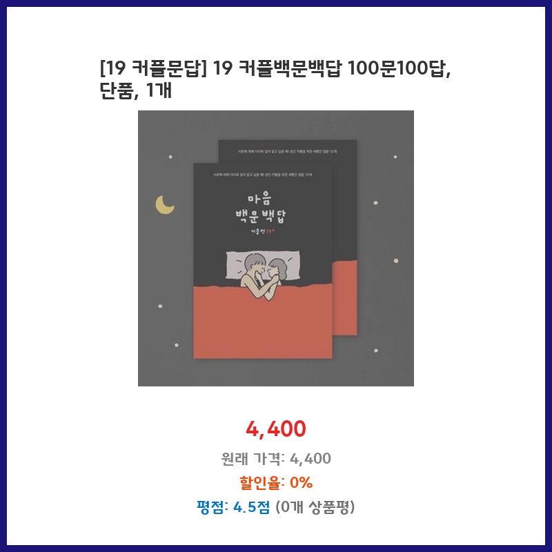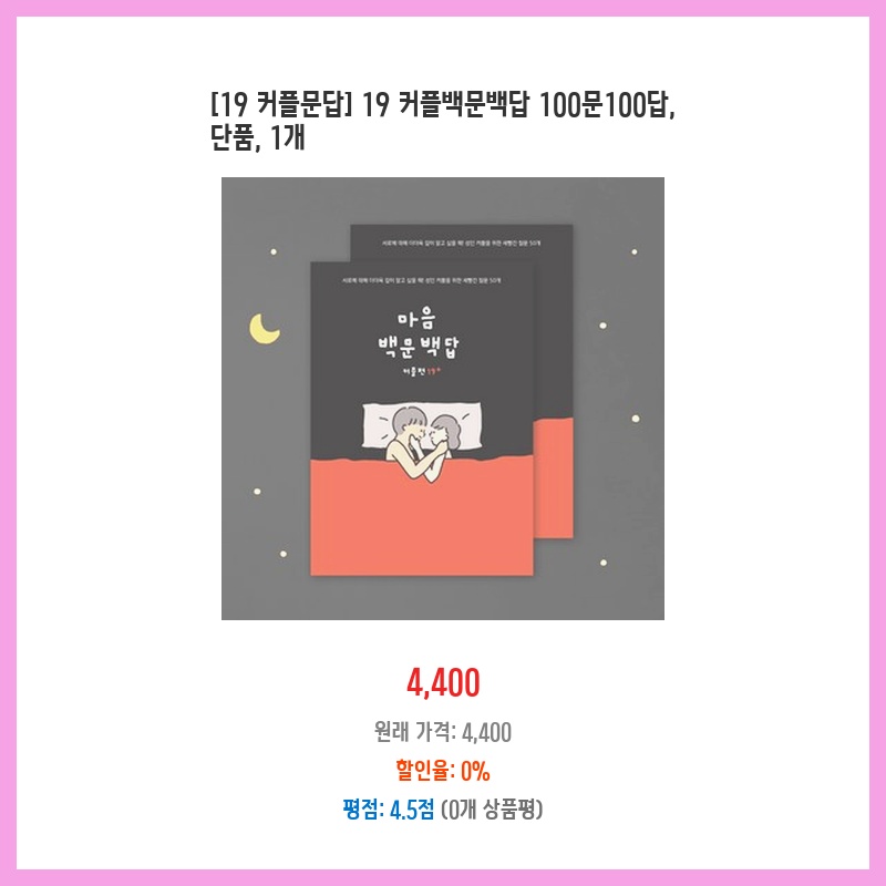 [19 커플문답] 19 커플백문백답 100문100답, 단품, 1개