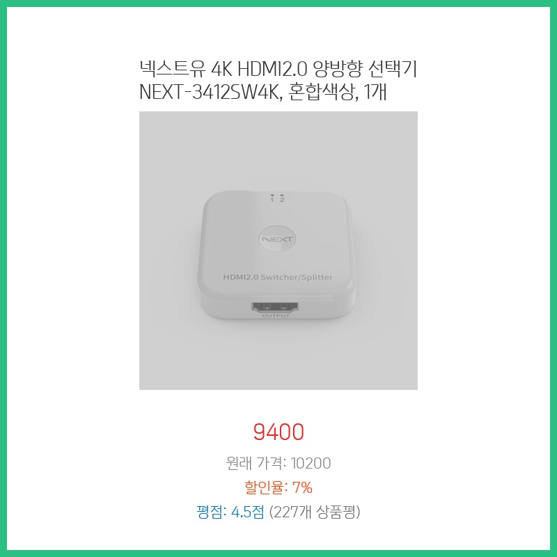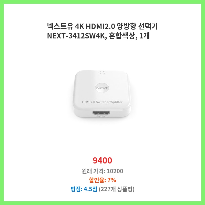 4K 해상도를 지원하는 HDMI 장치가 두 개 있는데, 하나의 TV에 연결해서 편리하게 사용하고 싶어서 구매했습니다. 가격도 저렴하고 HDMI 2.0을 지원해서 4K60Hz도 문제없이 사용 가능하다는 점이 좋았습니다.