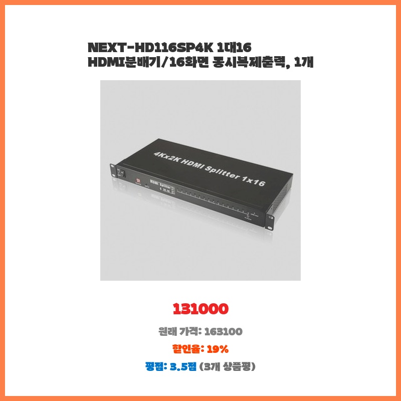 NEXT-HD116SP4K 1대16 HDMI분배기/16화면 동시복제출력, 1개