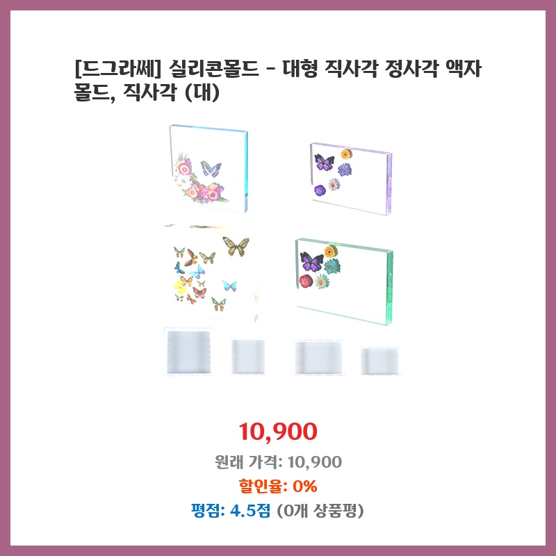 큰 사이즈의 액자를 만들고 싶어서 구매했습니다. 실리콘 재질이라 탈형이 쉽고, 내구성도 좋아 여러 번 사용할 수 있을 것 같아 만족스럽습니다. 직사각형과 정사각형 두 가지 모양을 활용할 수 있는 점도 좋았습니다.