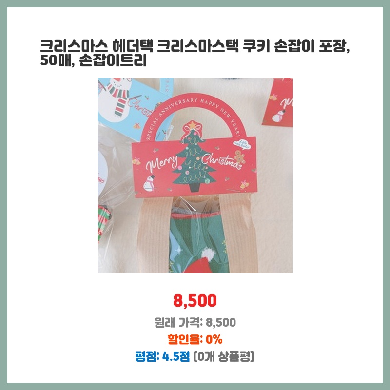 크리스마스 헤더택 크리스마스택 쿠키 손잡이 포장, 50매, 손잡이트리