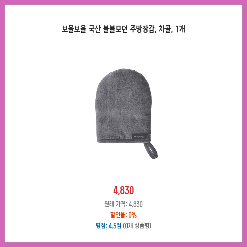 뜨거운 냄비도 안전하게 잡을 수 있어 만족합니다. 손목까지 오는 길이라 편리하고, 세탁 후에도 늘어나지 않아 좋네요. 차콜 색상도 고급스럽습니다.
