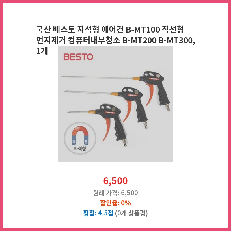 국산 베스토 자석형 에어건 B-MT100 직선형 먼지제거 컴퓨터내부청소 B-MT200 B-MT300, 1개