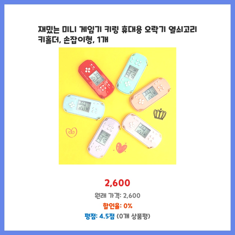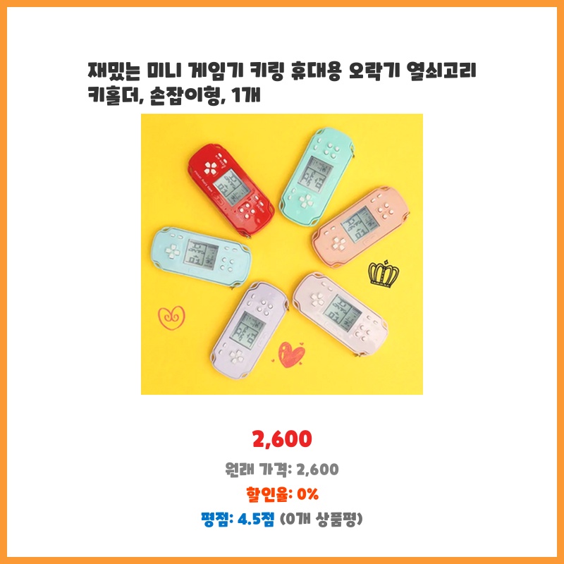 가방에 달고 다니면서 심심할 때 간단하게 게임을 즐길 수 있어서 구매했습니다. 크기가 작고 휴대성이 좋아서 부담없이 가지고 다닐 수 있는 점이 좋았습니다. 손잡이가 있어서 조작도 편리합니다.