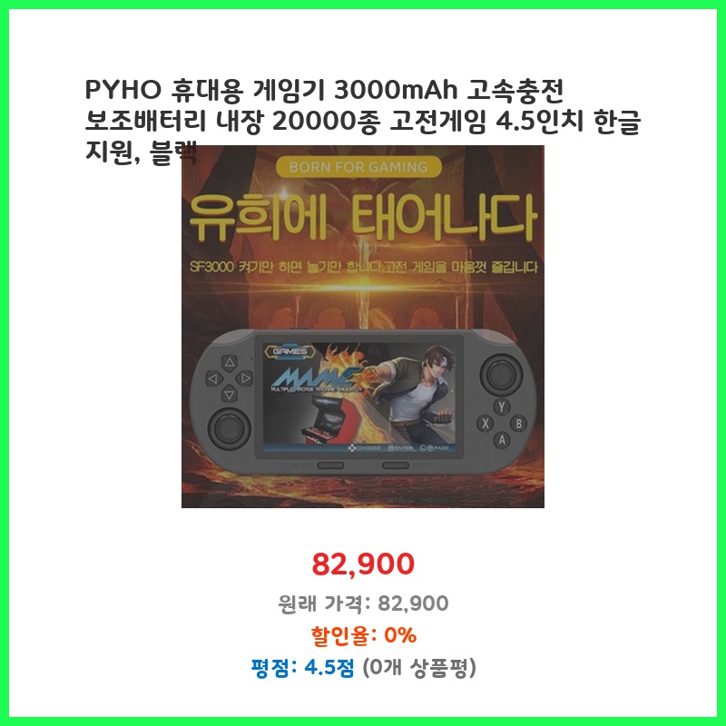 어릴 적 추억의 게임들을 편리하게 즐길 수 있어 너무 좋습니다! 화면도 선명하고, 배터리도 오래 가네요. 만족합니다!