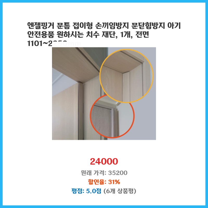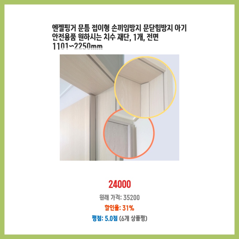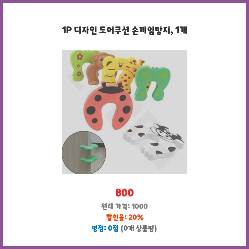 아이가 문에 손을 자주 끼는 걱정에 구매했습니다. 800원이라는 저렴한 가격에 손끼임 방지 효과를 볼 수 있다는 점이 매력적이었습니다. 설치도 간편하고 디자인도 깔끔해서 만족스럽습니다.