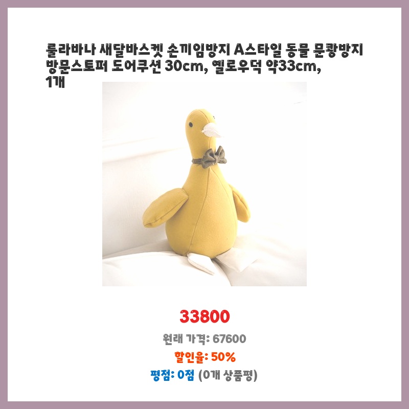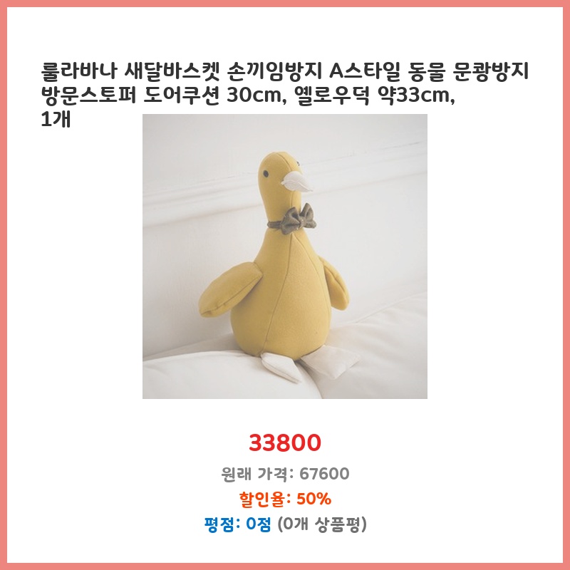 룰라바나 새달바스켓 손끼임방지 A스타일 동물 문쾅방지 방문스토퍼 도어쿠션 30cm, 옐로우덕 약33cm, 1개