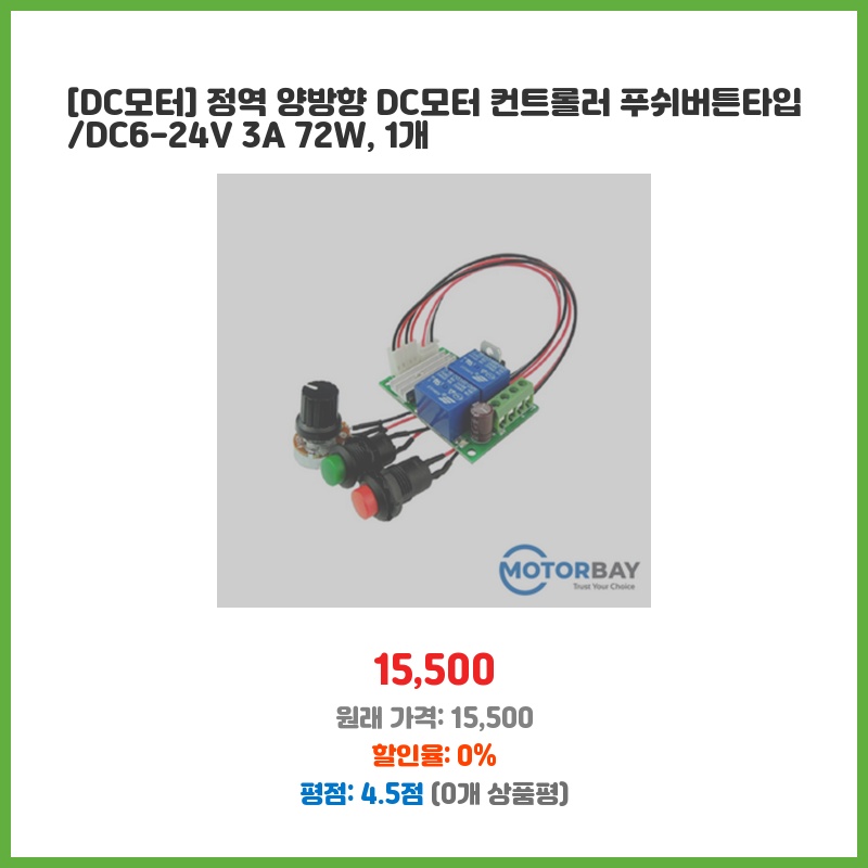 DC모터 제어가 필요한 프로젝트에 적합한 제품이라 구매했습니다. 푸쉬버튼 방식으로 편리하고, 624V의 넓은 전압 범위와 3A의 충분한 전류 용량이 매력적입니다. 양방향 제어 기능도 작업에 유용할 것 같습니다.