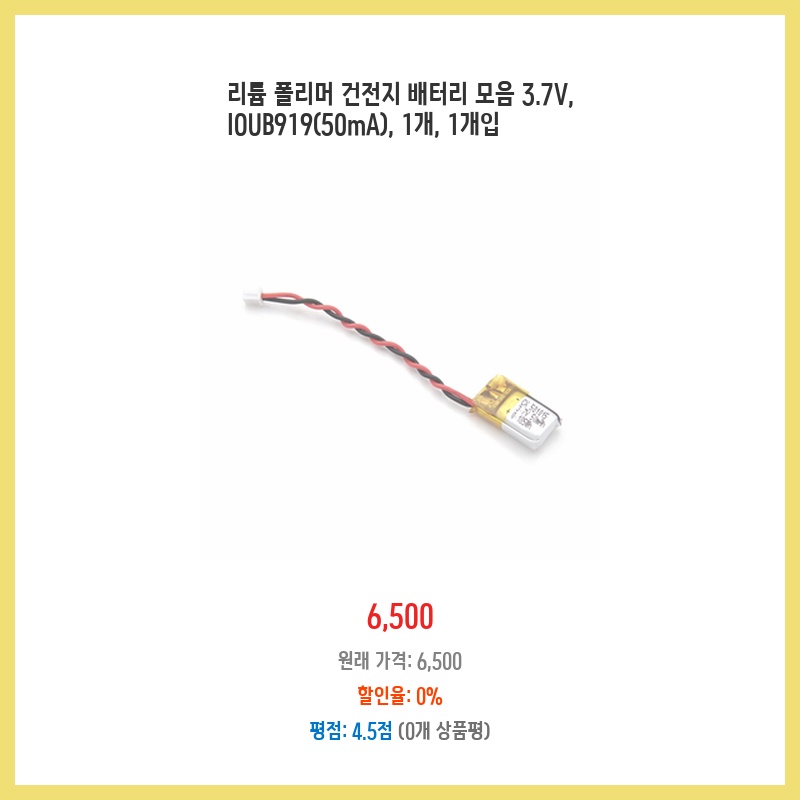 리튬 폴리머 건전지 배터리 모음 3.7V, IOUB919(50mA), 1개, 1개입