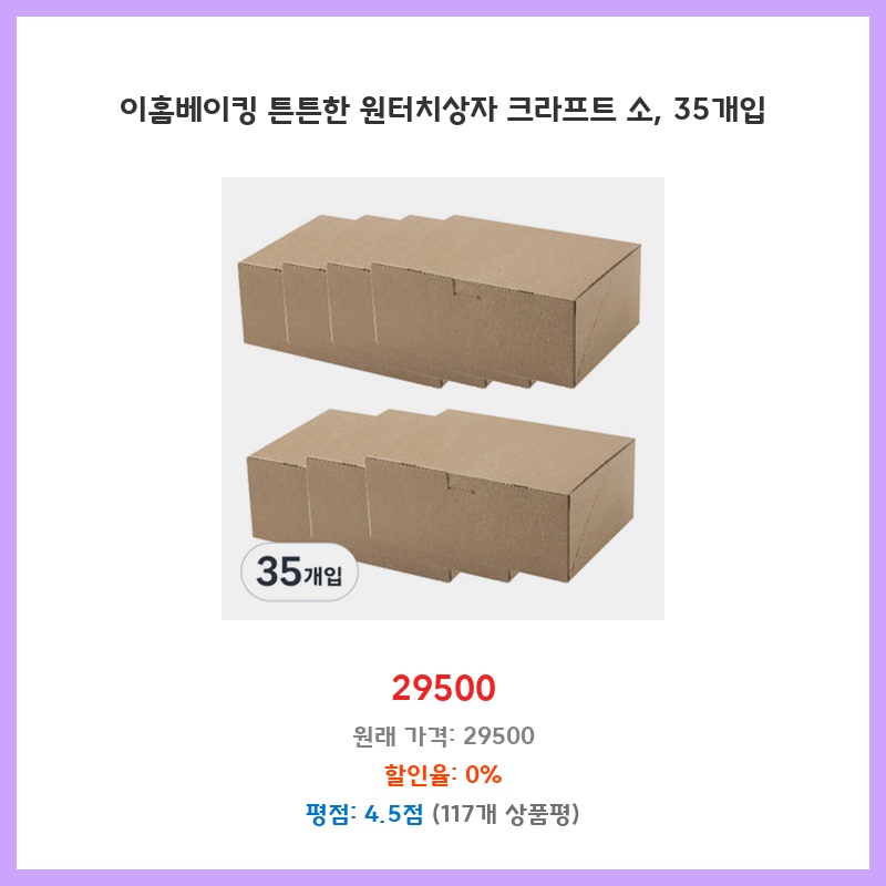 이홈베이킹 튼튼한 원터치상자 크라프트 소, 35개입