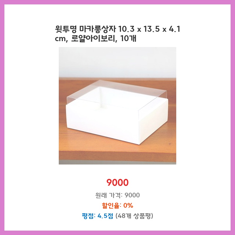 마카롱 선물 포장용으로 딱 좋았어요! 고급스러워 보이고, 윗면이 투명이라 마카롱이 다 보여서 더 예뻐 보입니다. 튼튼해서 마카롱 운반에도 문제 없었어요.