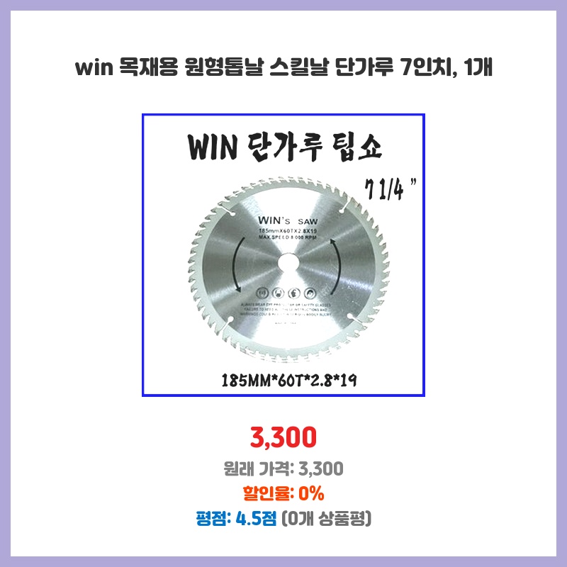 win 목재용 원형톱날 스킬날 단가루 7인치, 1개