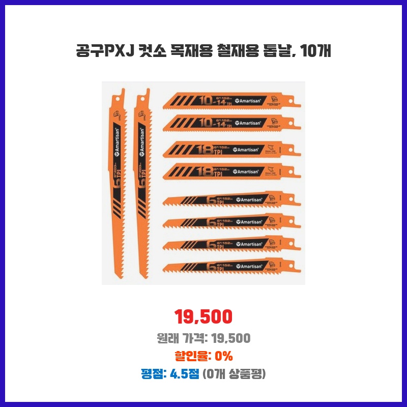 목재와 철재 모두 작업할 수 있는 톱날이 필요했는데, 10개들이라 가성비가 좋았습니다. 다양한 작업에 활용 가능하고, 교체가 편리할 것 같아 구매했습니다. 가격 대비 품질이 괜찮아 보였습니다.