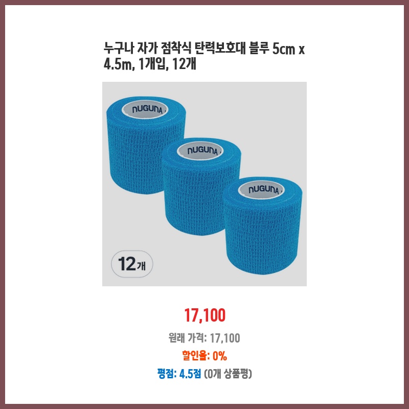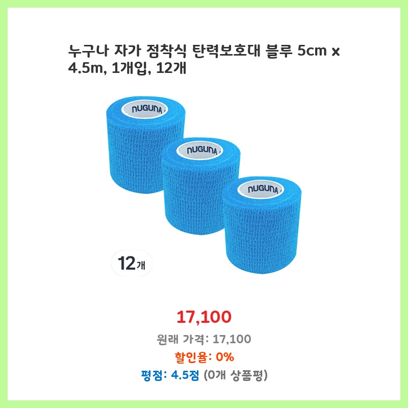 누구나 자가 점착식 탄력보호대 블루 5cm x 4.5m, 1개입, 12개