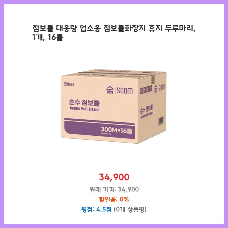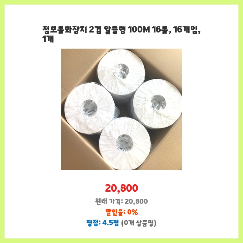업소용으로 화장지 소모량이 많아 경제적인 제품을 찾던 중 발견했습니다. 16롤 대용량에 가격도 저렴하고, 품질도 괜찮아서 한 번에 구매했습니다. 재구매 의사 있습니다.