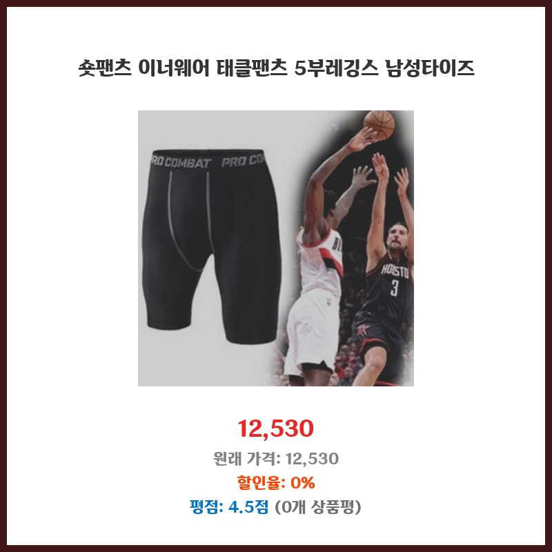 숏팬츠 이너웨어 태클팬츠 5부레깅스 남성타이즈
