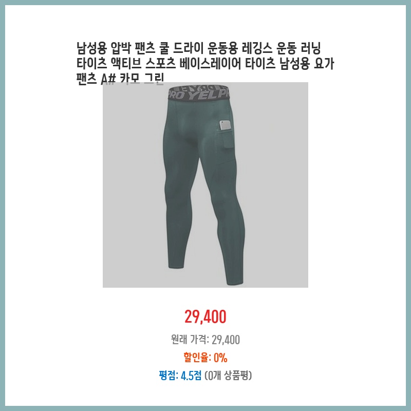 여름철 땀 흡수가 잘 되는 운동용 레깅스가 필요했습니다. 카모 그린 색상이 마음에 들었고, 압박 기능으로 운동 효율도 높일 수 있을 것 같아 구매했습니다. 착용감도 편안하다는 후기가 많았습니다.