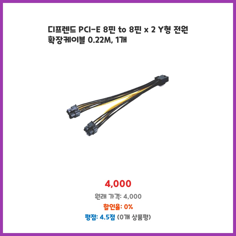 PCI-E전원케이블, 8핀전원케이블, 그래픽카드전원, Y형케이블, 전원확장케이블, 디프렌드, PC케이블