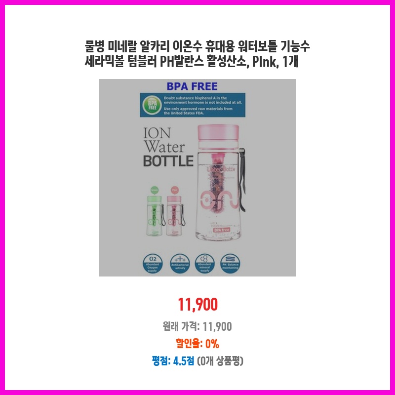 물병 미네랄 알카리 이온수 휴대용 워터보틀 기능수 세라믹볼 텀블러 PH발란스 활성산소, Pink, 1개