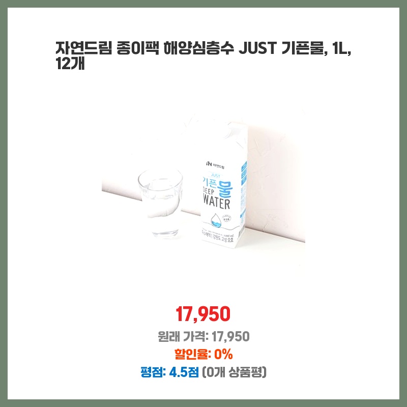 자연드림, 해양심층수, 기픈물, 종이팩, 1L, 건강한물, 먹는샘물