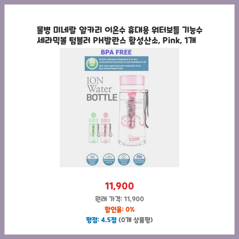 휴대가 간편하고 디자인도 예뻐서 구매했습니다. 알카리 이온수를 즐겨 마시는데, 세라믹볼 덕분에 물맛이 부드러워진 것 같아 만족스럽습니다. 일상에서 건강을 챙기기에 좋을 것 같아요.