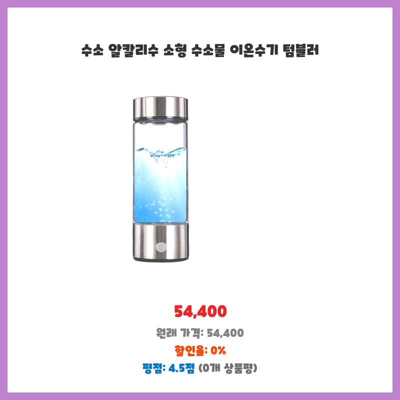 휴대가 간편한 디자인에 수소수를 간편하게 마실 수 있어 구매했습니다. 물맛이 부드러워지고, 일상생활 속에서 건강 관리에 도움이 될 것 같아 만족합니다. 가격 대비 기능도 괜찮습니다.