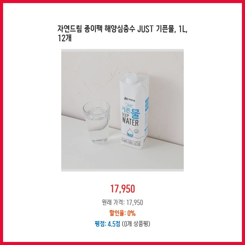 깨끗한 해양심층수를 편리하게 마시고 싶어서 구매했습니다. 종이팩이라 환경에도 좋고, 1L 용량이라 가족 모두 부담없이 마실 수 있습니다. 자연드림이라 믿고 마실 수 있는 점도 좋았습니다.