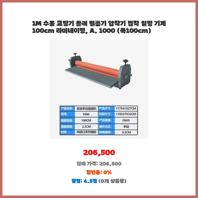 즉시 구매 1M 수동 코팅기 롤러 필름기 압착기 접착 씰링 기계 100cm 라미네이팅 A. 1000 이 가격에 놓치면 후회
