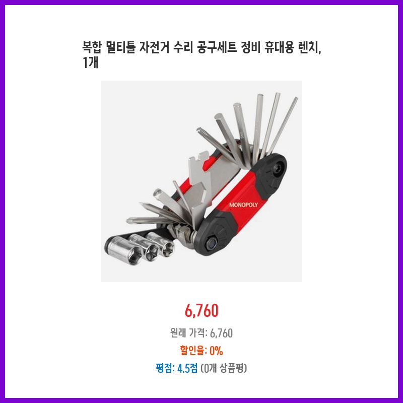 자전거 수리용 렌치를 휴대하고 다니고 싶어서 구매했습니다. 작고 가벼워서 가방에 부담 없이 넣고 다닐 수 있고, 필요한 사이즈의 렌치가 다 있어서 편리합니다. 가격도 저렴해서 부담 없이 구입했습니다.