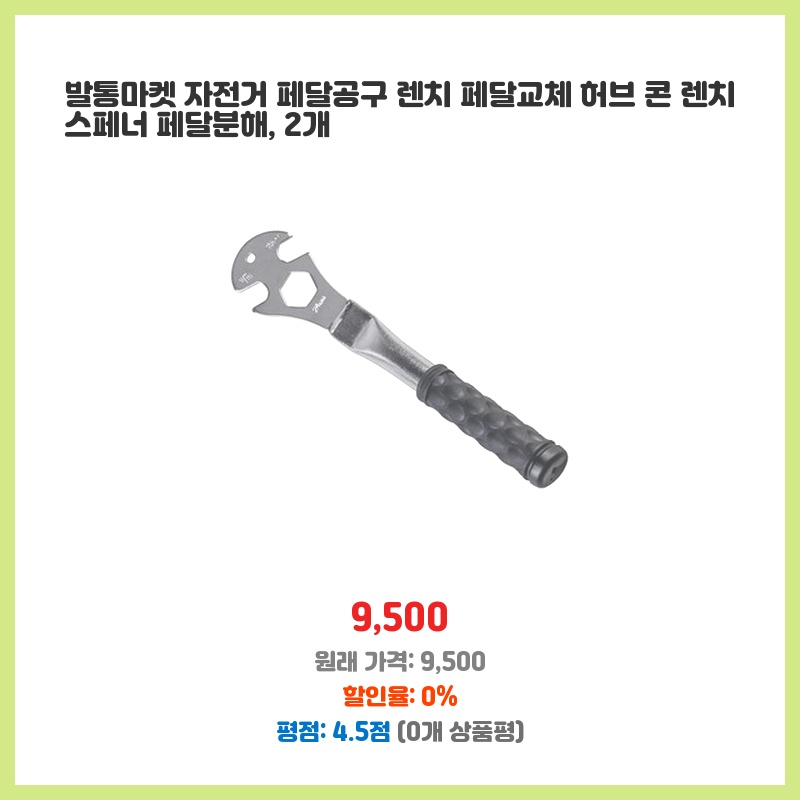 자전거 페달 교체가 필요했는데, 따로 공구를 구매하기엔 부담스러웠습니다. 이 제품은 2개 세트라 여러 종류의 페달과 허브에 사용할 수 있고, 가격도 합리적이어서 구매했습니다. 튼튼해 보이는 재질도 마음에 들었습니다.