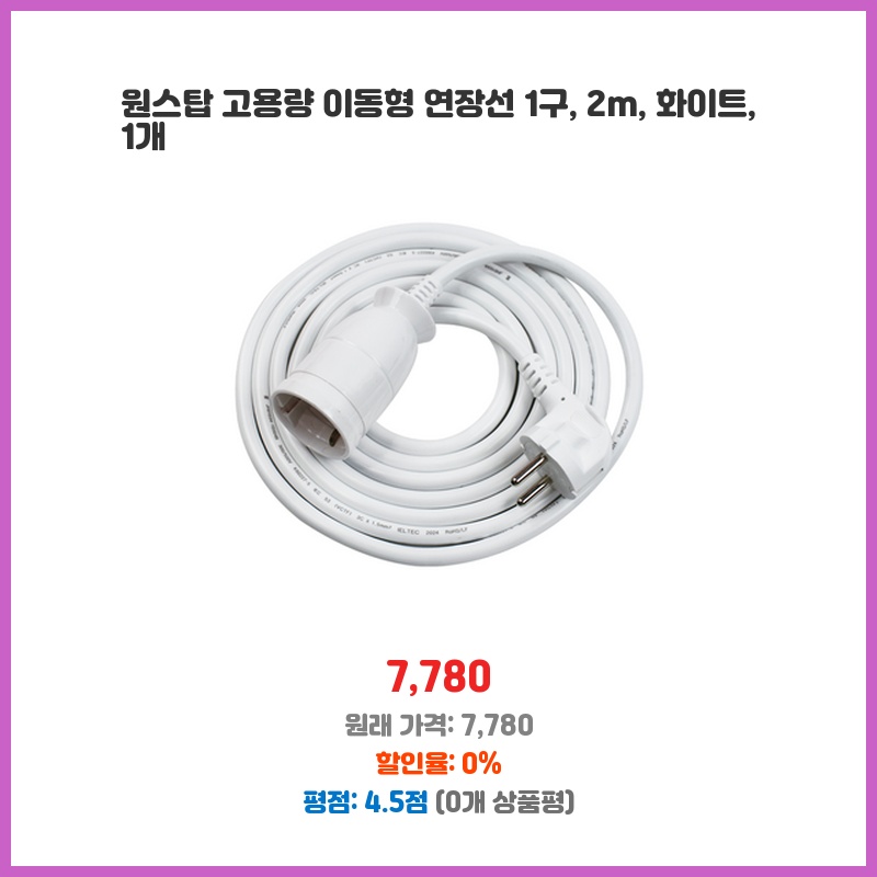 깔끔한 디자인에 2m 길이로 충분히 활용 가능해서 구매했습니다. 고용량이라 여러 기기를 동시에 사용해도 안정적이고, 1구라서 사용이 간편합니다. 화이트 색상도 마음에 들었어요.