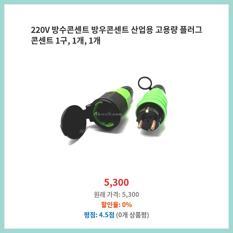 야외 작업장에 220V 방수 콘센트가 필요했는데, 가격 대비 성능이 좋아 보여 구매했습니다. 방수 기능이 뛰어나고 고용량이라 안전하게 사용할 수 있을 것 같아 만족스럽습니다. 1구라 설치도 간편할 것 같습니다.