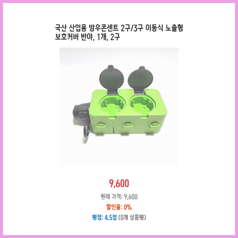 야외 작업장의 전기 콘센트가 비에 노출되어 안전이 걱정되어 구매했습니다. 방수 기능이 있어 안전하게 사용할 수 있고, 튼튼한 고무 재질이라 오래 쓸 수 있을 것 같아 만족스럽습니다. 220V 지원도 중요한 구매 포인트였습니다.