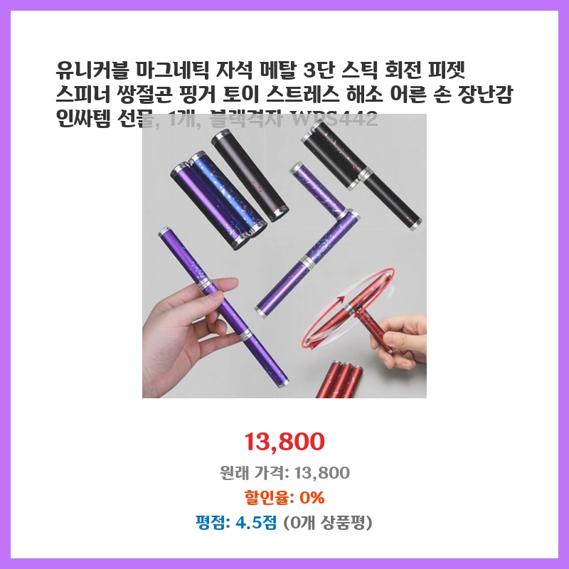 집중력이 떨어지고 스트레스가 심해서 손으로 만지작거릴 장난감이 필요했어요. 메탈 재질이 고급스러워 보이고, 3단 회전이 부드러워 만족스러워요. 심플한 디자인도 마음에 듭니다.