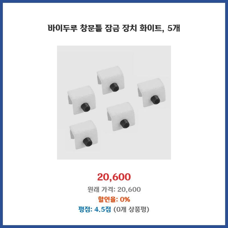 아이들이 창문을 열고 떨어질까 걱정되어 안전장치가 필요했습니다. 바이두루 창문틀 잠금장치는 설치가 간편하고 5개 세트라 여러 창문에 사용할 수 있어 실용적이라고 생각했습니다. 흰색이라 인테리어에도 잘 어울릴 것 같았습니다.