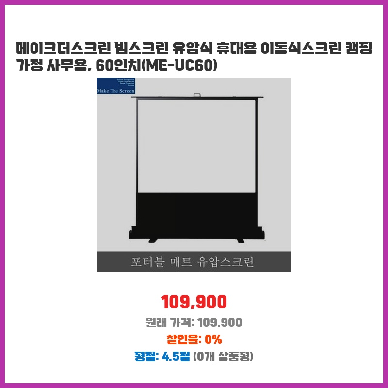 지금 뜨는 상품 메이크더스크린 빔스크린 유압식 휴대용 이동식스크린 캠핑 가정 사무용 60인치 놓칠 수 없는 선택