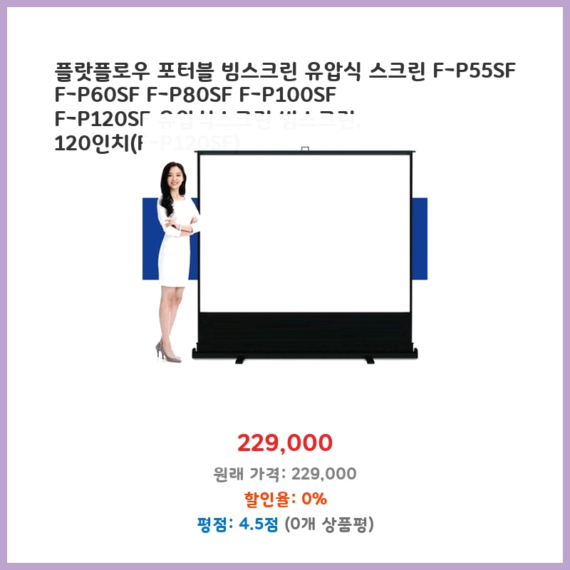 휴대성과 설치 편의성이 뛰어난 유압식 빔스크린이 필요했습니다. 120인치 대화면에 깔끔한 화질을 제공하며, 설치 공간도 크게 차지하지 않아 만족스럽습니다. 가격 대비 성능도 우수하다고 생각합니다.