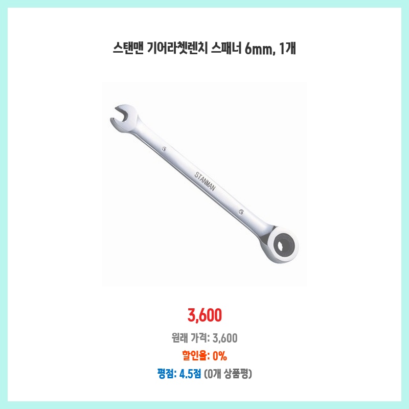 스탠맨 기어라쳇렌치 스패너 6mm, 1개