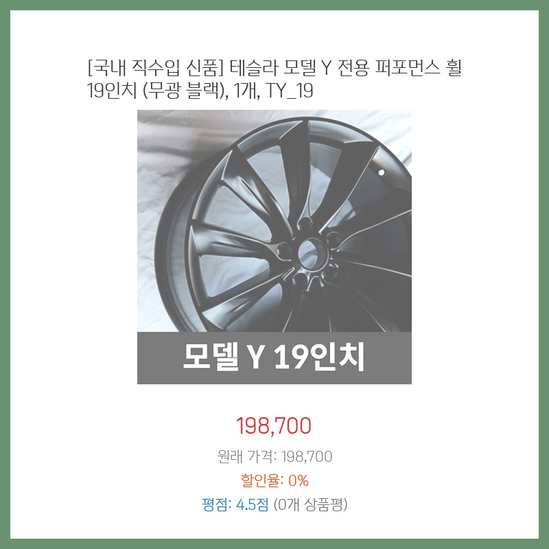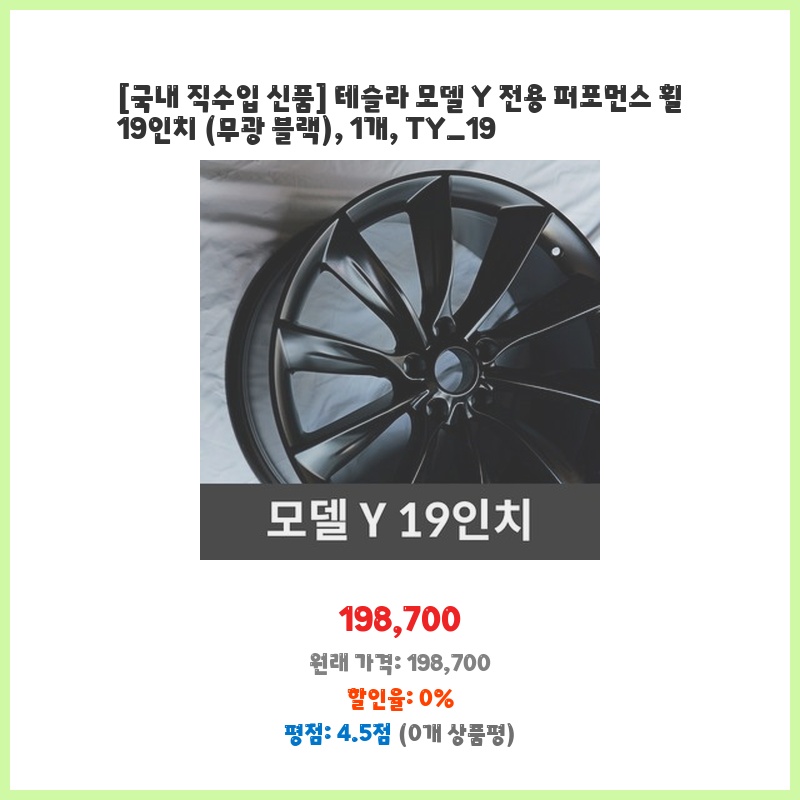 [국내 직수입 신품] 테슬라 모델 Y 전용 퍼포먼스 휠 19인치 (무광 블랙), 1개, TY_19
