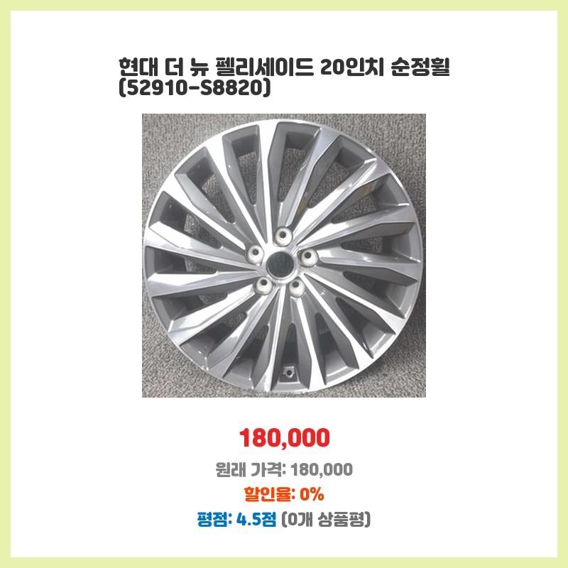 기존 휠 손상으로 교체가 필요했고, 순정 휠이라 차량과의 완벽한 호환성과 디자인 일체감이 마음에 들었습니다. 180,000원이라는 가격 또한 중고시장 대비 합리적이라고 판단했습니다.