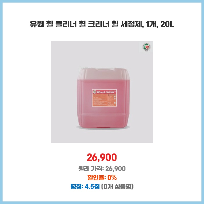 유원 휠 클리너 휠 크리너 휠 세정제, 1개, 20L