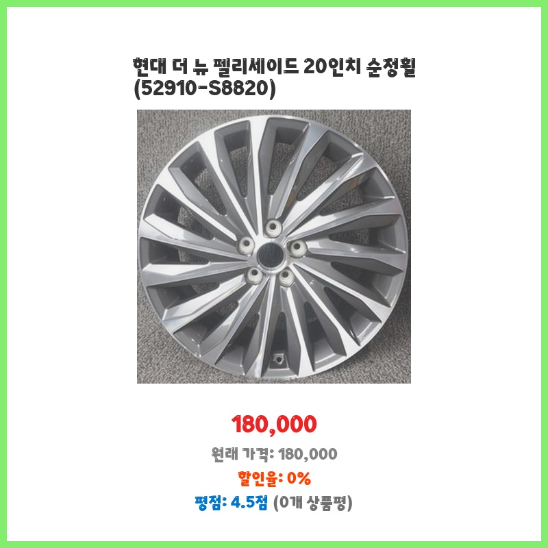 현대 더 뉴 펠리세이드에 맞는 순정 20인치 휠입니다. 부품번호(52910-S8820) 확인 필수입니다.