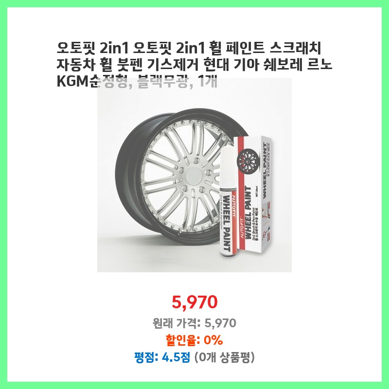 휠 스크래치가 신경쓰여서 간편하게 수리할 방법을 찾던 중 붓펜 형태라 사용이 편리해 보였고, 현대, 기아 차량에 맞는 색상이라 구매했습니다. 작은 흠집은 효과적으로 가릴 수 있을 것 같아 기대됩니다.