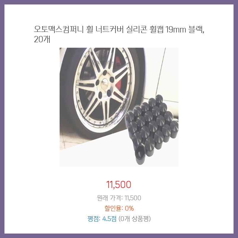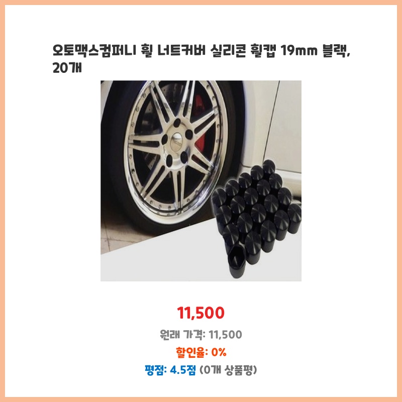 낡은 휠 너트가 보기 싫어서 깔끔하게 바꾸고 싶었어요. 실리콘 재질이라 쉽게 끼울 수 있고, 19mm 사이즈가 제 차에 딱 맞아서 구매했습니다. 20개라 여유있게 사용할 수 있는 점도 좋았습니다.