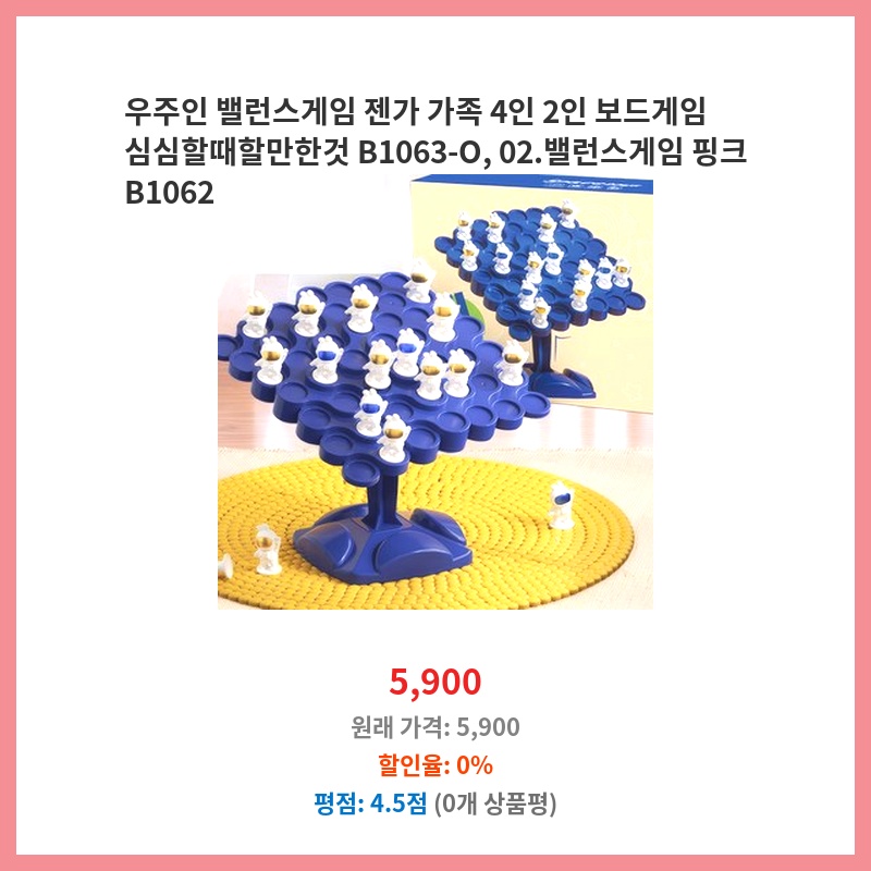 우주인 밸런스게임 젠가 가족 4인 2인 보드게임 심심할때할만한것 B1063-O, 02.밸런스게임 핑크 B1062